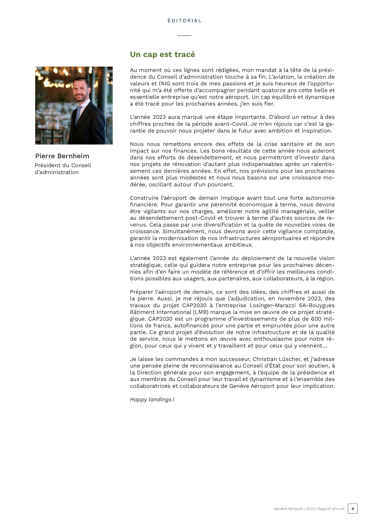Mission : Ma mission de Président est de diriger le processus stratégique, la gouvernance et le suivi de l'Aéroport de Genève.